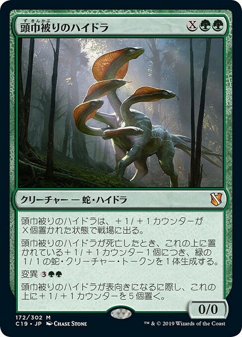 |  Variations— Parts— | Hidra Encapuzada0 / 0 Hidra Encapuzada entra no campo de batalha com X marcadores +1/+1. Quando Hidra Encapuzada morrer, crie uma ficha de criatura verde 1/1 do tipo Cobra para cada marcador +1/+1 nela. Metamorfose Conforme Hidra Encapuzada é voltada para cima, coloque cinco marcadores +1/+1 nela.