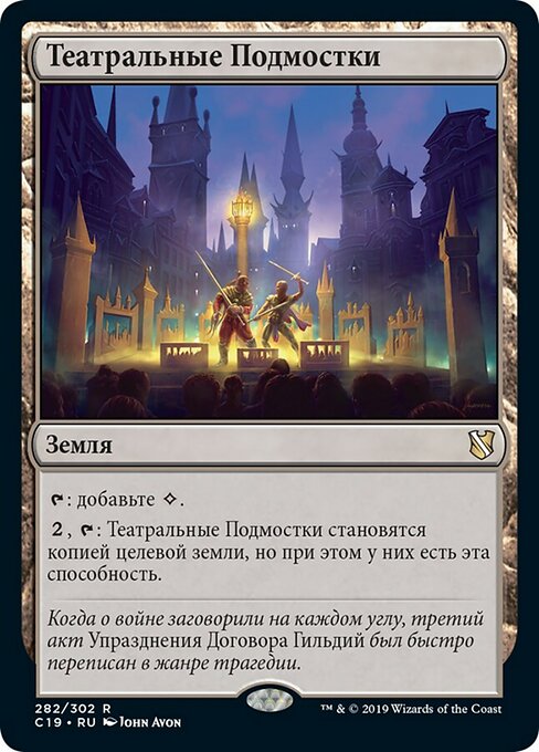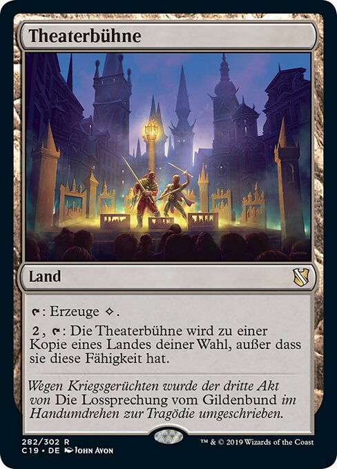 LegalitiesLegal Duel Brawl Penny Legacy Modern Pioneer Vintage Historic Timeless Commander Gladiator Oathbreaker Not Legal Predh Future Pauper Alchemy Standard Oldschool Premodern Standardbrawl Paupercommander RulingsThe copy effect created by the last activated ability doesn't have a duration. It will last until Thespian's Stage leaves the battlefield or another copy effect overwrites it. The permanent will no longer have the first ability of Thespian's Stage.