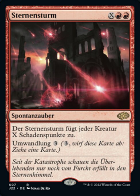 |  Variations— Parts— | SternensturmDer Sternensturm fügt jeder Kreatur X Schadenspunkte zu. Umwandlung