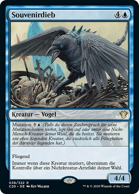 ![]() Variations— Parts— | Souvenir Snatcher4 / 4 Mutate Flying Whenever this creature mutates, gain control of target noncreature artifact.