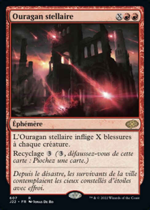 |  Variations— Parts— | Ouragan stellaireL'Ouragan stellaire inflige X blessures à chaque créature. Recyclage