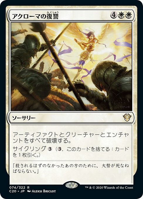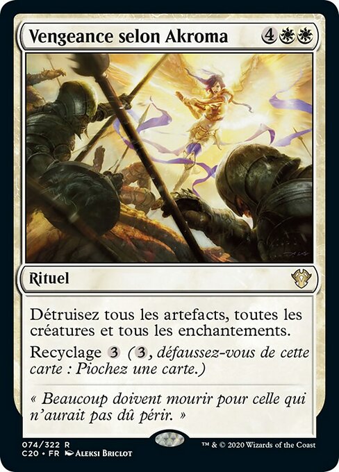 ![]() Variations— Parts— | Vengeance selon AkromaDétruisez tous les artefacts, toutes les créatures et tous les enchantements. Recyclage