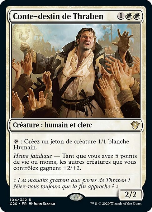|  Variations— Parts— | Profeta di Thraben2 / 2 Ora fatidica — Fintanto che hai 5 o meno punti vita, le altre creature che controlli prendono +2/+2.