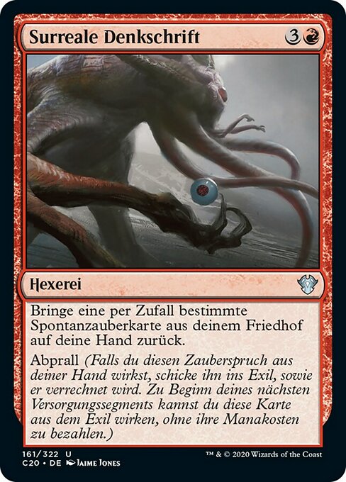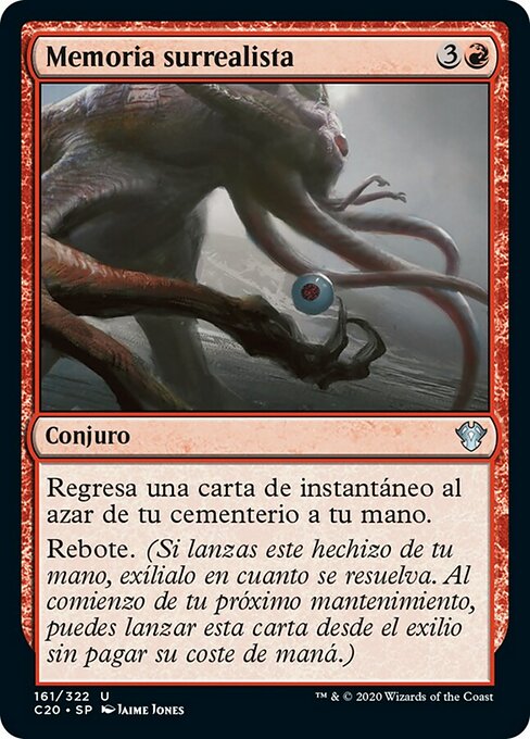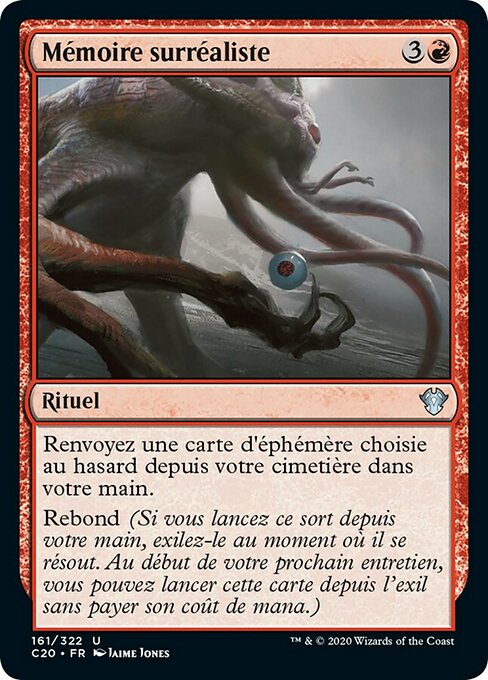 ![]() Variations— Parts— | Memorie SurrealiRiprendi in mano una carta istantaneo a caso dal tuo cimitero. Ripresa (Se lanci questa magia dalla tua mano, esiliala mentre si risolve. All'inizio del tuo prossimo mantenimento, puoi lanciare questa carta dall'esilio senza pagare il suo costo di mana.)