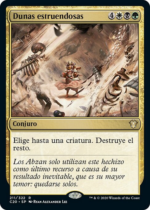 LegalitiesLegal Duel Brawl Penny Legacy Modern Pioneer Vintage Historic Timeless Commander Gladiator Oathbreaker Not Legal Predh Future Pauper Alchemy Standard Oldschool Premodern Standardbrawl Paupercommander RulingsYou decide which creature to spare as Duneblast resolves. This choice doesn't target the creature. If you don't choose a creature, then all creatures will be destroyed.