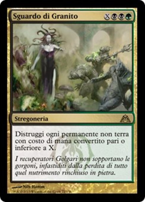 |  Variations— Parts— | Sguardo di GranitoDistruggi ogni permanente non terra con costo di mana convertito pari o inferiore a X.