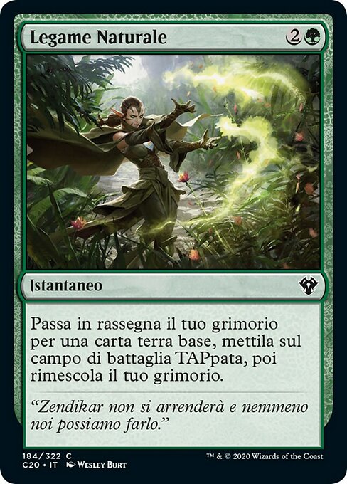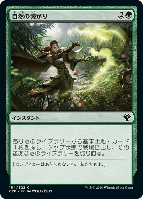 |  Variations— Parts— | 自然の繋がりあなたのライブラリーから基本土地・カード1枚を探し、タップ状態で戦場に出し、その後あなたのライブラリーを切り直す。