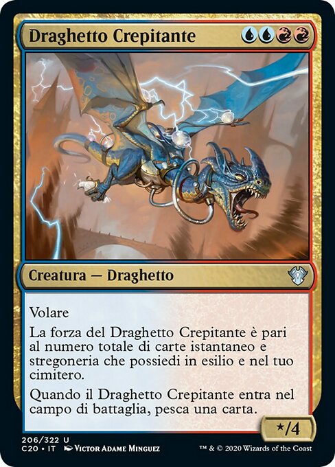 ![]() Variations— Parts— | 弾けるドレイク* / 4 飛行 弾けるドレイクのパワーは、追放領域かあなたの墓地にあって、あなたがオーナーでありインスタントやソーサリーであるカードの総数に等しい。 弾けるドレイクが戦場に出たとき、カードを1枚引く。