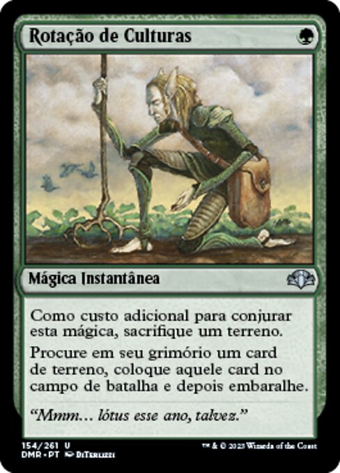 |  Variations— Parts— | Rotação de CulturasComo custo adicional para conjurar esta mágica, sacrifique um terreno. Procure em seu grimório um card de terreno, coloque aquele card no campo de batalha virado e depois embaralhe seu grimório.