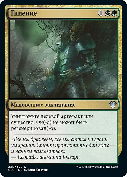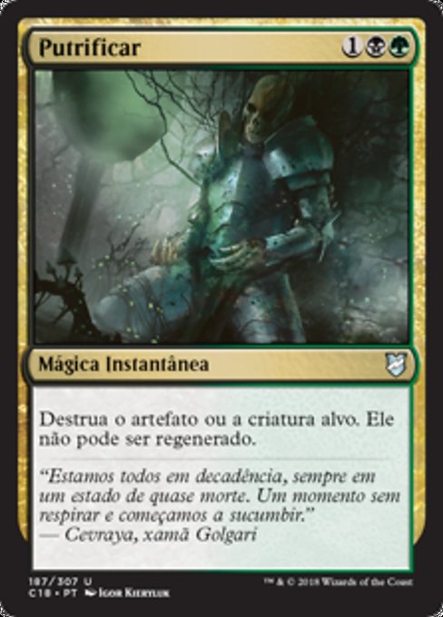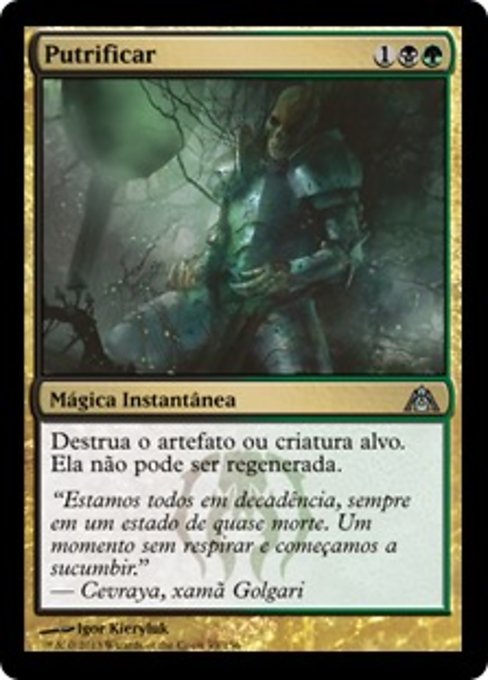 ![]() Variations— Parts— | PutrificarDestrua o artefato ou a criatura alvo. Ela não pode ser regenerada.