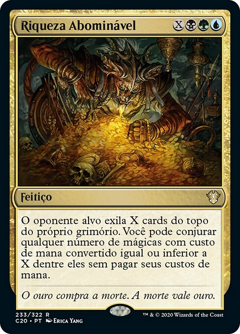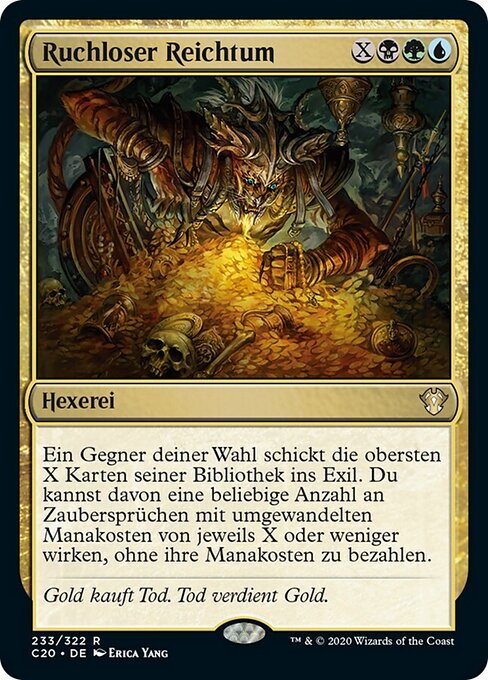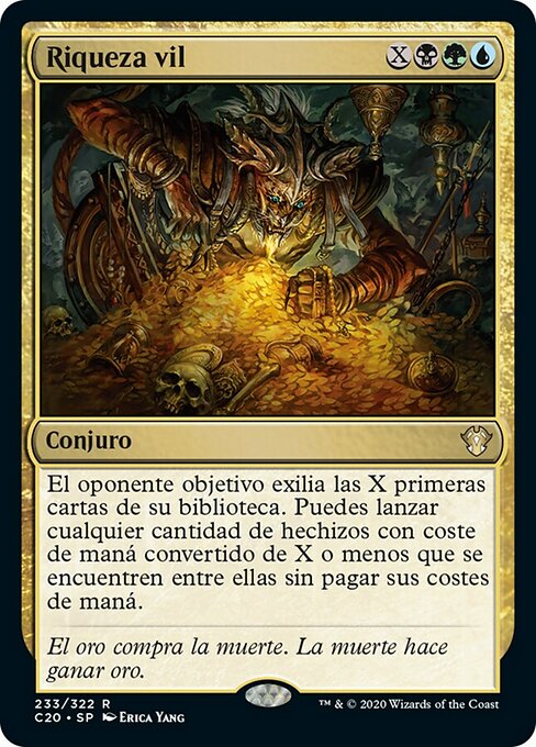 ![]() Variations— Parts— | Богатство ЗлодеяЦелевой оппонент изгоняет Х верхних карт своей библиотеки. Вы можете разыграть любое количество находящихся среди них заклинаний с конвертированной мана-стоимостью не более X без уплаты их мана-стоимости.