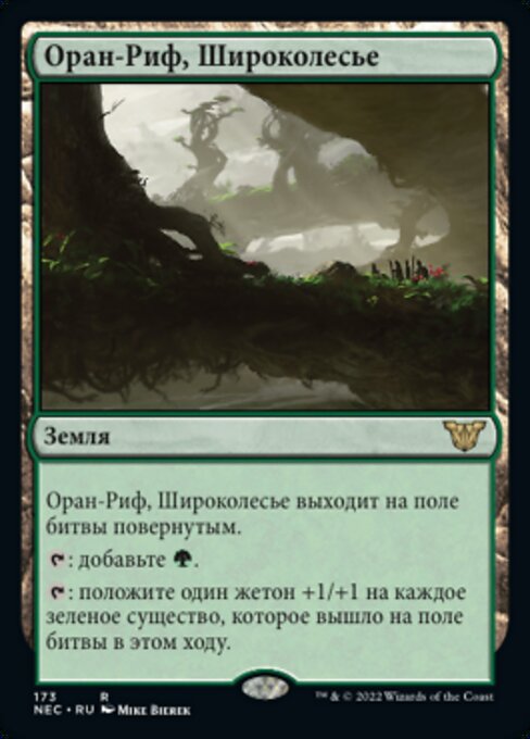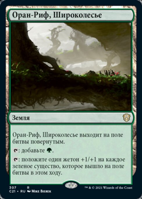 LegalitiesLegal Duel Penny Predh Legacy Modern Vintage Commander Oathbreaker Not Legal Brawl Future Pauper Alchemy Pioneer Historic Standard Timeless Gladiator Oldschool Premodern Standardbrawl Paupercommander RulingsOran-Rief's last ability cares about permanents' characteristics at the time the ability resolves, not their characteristics at the time they entered. For example, if a blue creature enters, then is turned green by a spell or ability, then Oran-Rief's second ability resolves, you'll put a +1/+1 counter on that creature.