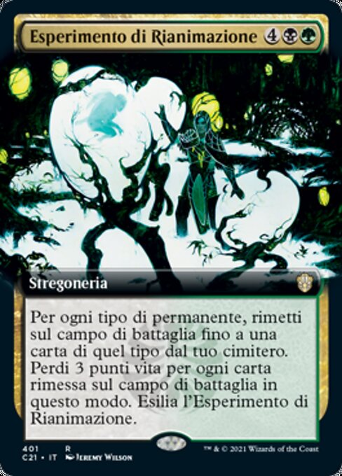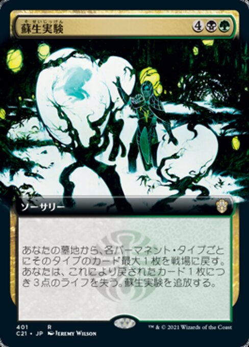 |  Variations : 1Parts— | Revival ExperimentFor each permanent type, return up to one card of that type from your graveyard to the battlefield. You lose 3 life for each card returned this way. Exile Revival Experiment.
