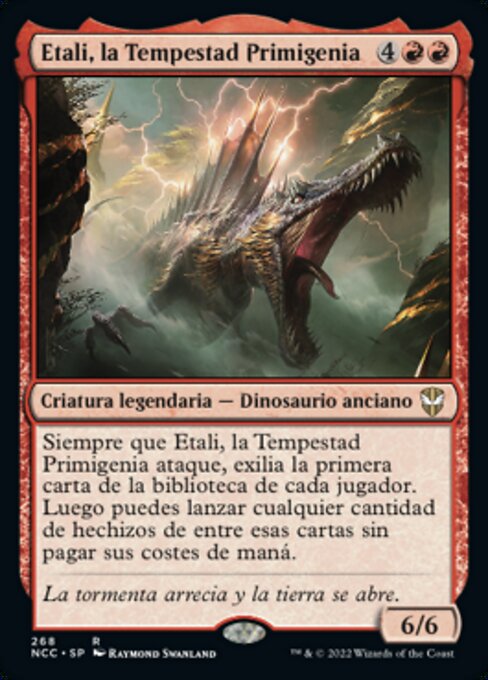 |  Variations— Parts— | Etali, la Tempestad Primigenia6 / 6 Siempre que Etali, la Tempestad Primigenia ataque, exilia la primera carta de la biblioteca de cada jugador. Luego puedes lanzar cualquier cantidad de hechizos de entre esas cartas sin pagar sus costes de maná.