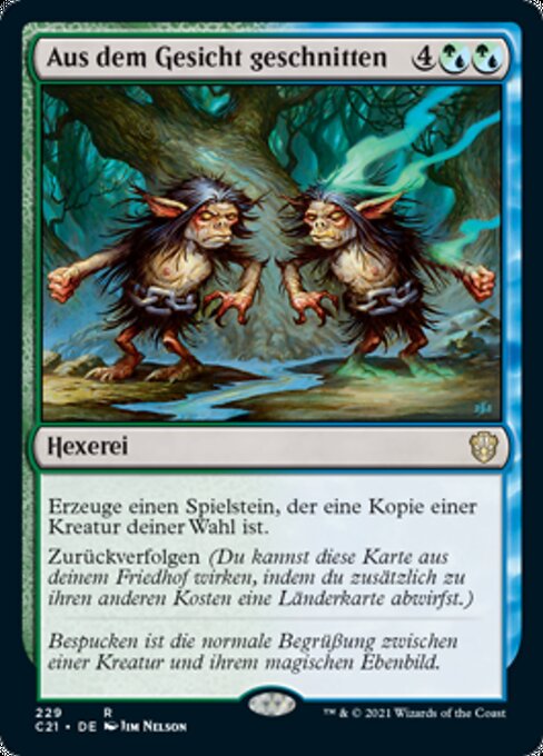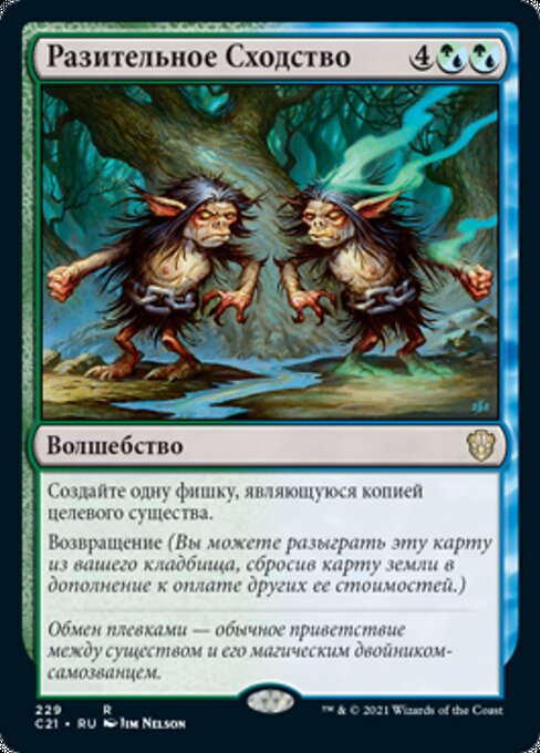![]() Variations— Parts— | Imagen escupidoraCrea una ficha que es una copia de la criatura objetivo. Desandar. (Puedes lanzar esta carta desde tu cementerio descartando una carta de tierra además de pagar sus otros costes.)