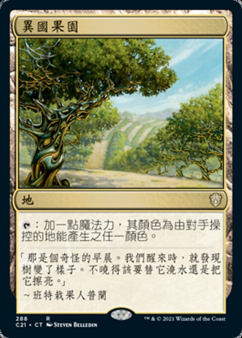 LegalitiesLegal Duel Penny Predh Legacy Modern Vintage Commander Oathbreaker Not Legal Brawl Future Pauper Alchemy Pioneer Historic Standard Timeless Gladiator Oldschool Premodern Standardbrawl Paupercommander RulingsThe colors of mana are white, blue, black, red, and green. Exotic Orchard can't be tapped for colorless mana, even if a land an opponent controls could produce colorless mana.