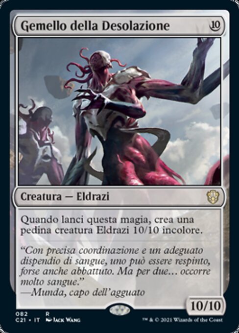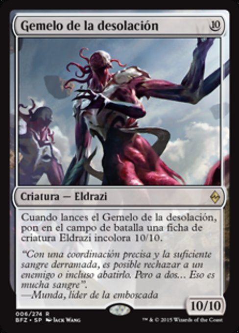 |  Variations— Parts— | Gemelo de la desolación10 / 10 Cuando lances este hechizo, crea una ficha de criatura Eldrazi incolora 10/10.
