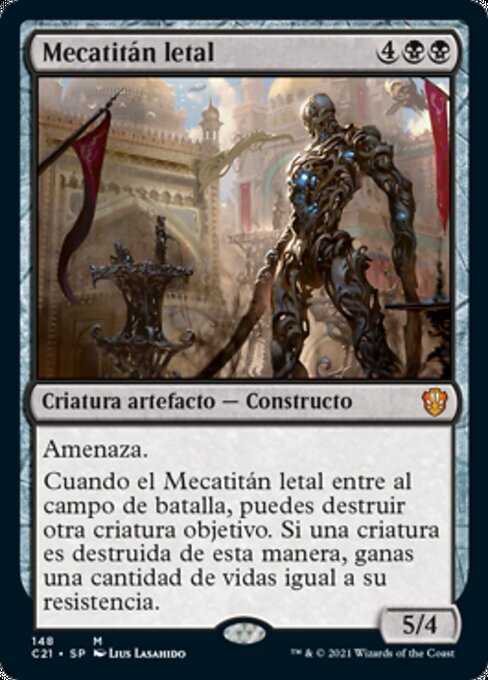 |  Variations— Parts— | Carcasse mécanique délétère5 / 4 Menace Quand la Carcasse mécanique délétère arrive sur le champ de bataille, vous pouvez détruire une autre créature ciblée. Si une créature est détruite de cette manière, vous gagnez un nombre de points de vie égal à son endurance.