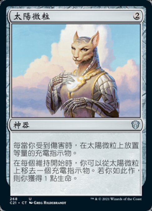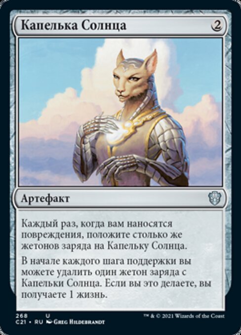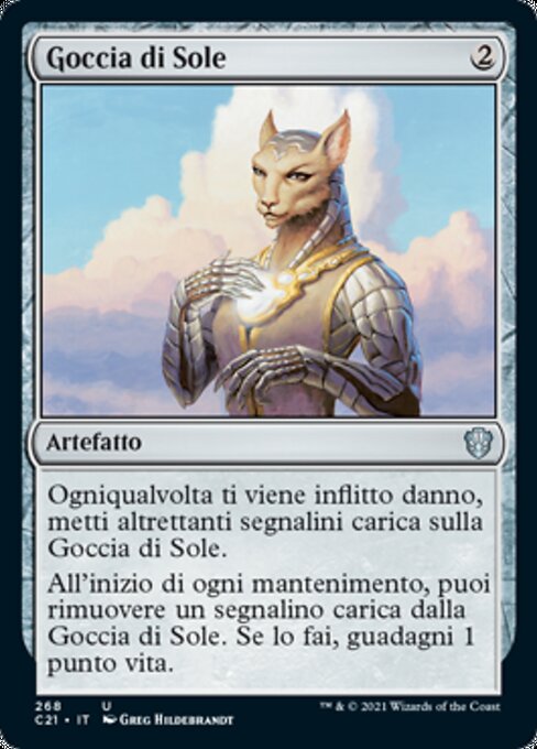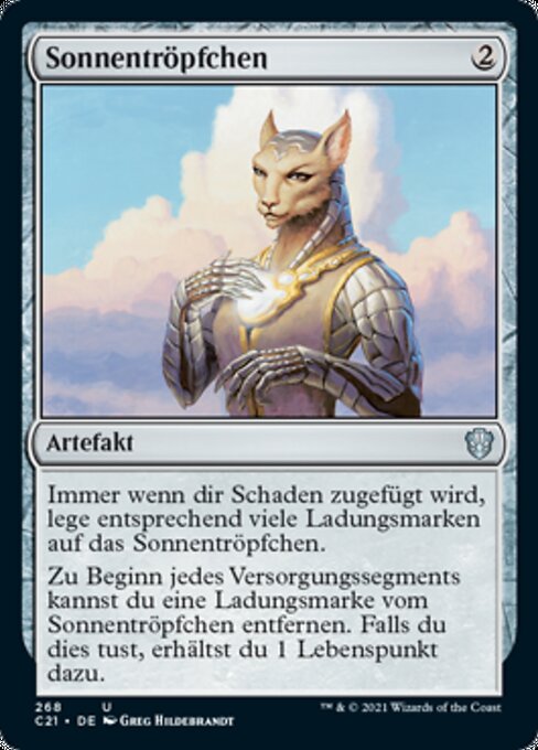 |  Variations— Parts— | Goutte de soleilÀ chaque fois que vous subissez des blessures, mettez autant de marqueurs « charge » sur la Goutte de soleil. Au début de chaque entretien, vous pouvez retirer un marqueur « charge » de la Goutte de soleil. Si vous faites ainsi, vous gagnez 1 point de vie.