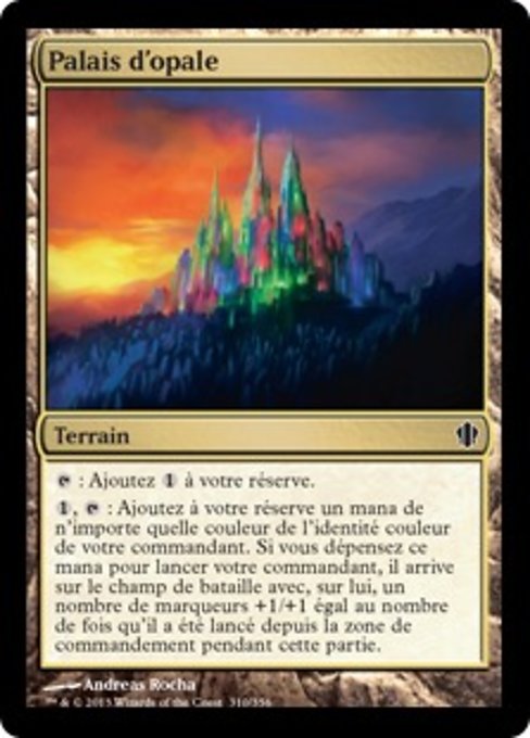LegalitiesLegal Duel Legacy Pauper Vintage Commander Oathbreaker Paupercommander Not Legal Brawl Penny Predh Future Modern Alchemy Pioneer Historic Standard Timeless Gladiator Oldschool Premodern Standardbrawl RulingsIf your commander is a card that has no colors in its color identity, Opal Palace's last ability produces no mana. It doesn't produce
