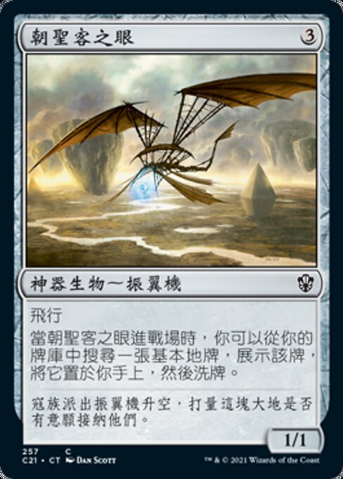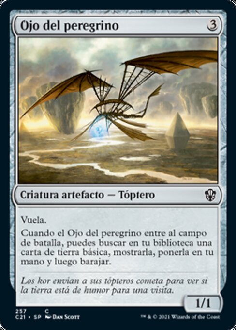 |  Variations— Parts— | Occhio del Pellegrino1 / 1 Volare Quando l'Occhio del Pellegrino entra nel campo di battaglia, puoi passare in rassegna il tuo grimorio per una carta terra base, rivelarla e aggiungerla alla tua mano, poi rimescolare.