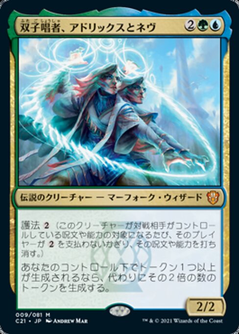 ![]() Variations : 1Parts— | Adrix e Nev, Incantatori Gemelli2 / 2 Egida Se una o più pedine stanno per essere create sotto il tuo controllo, invece ne vengono create il doppio.