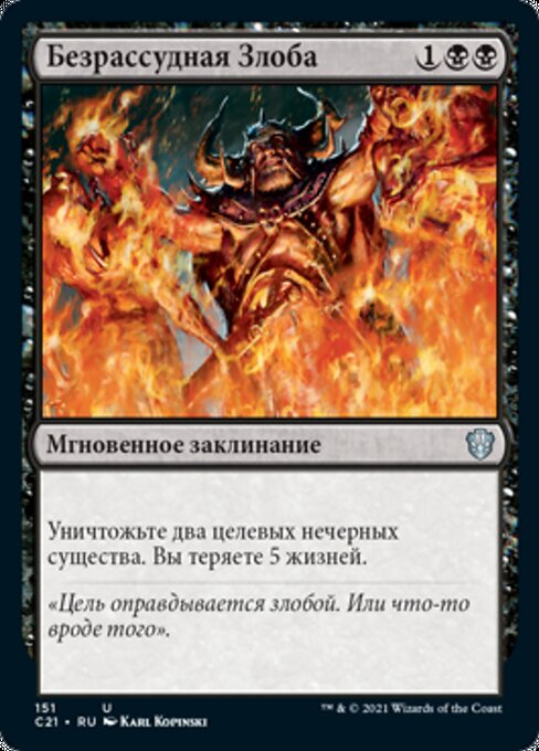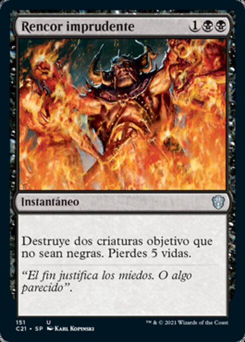 ![]() Variations— Parts— | Rancor ImprudenteDestrua duas criaturas não pretas alvo. Você perde 5 pontos de vida.