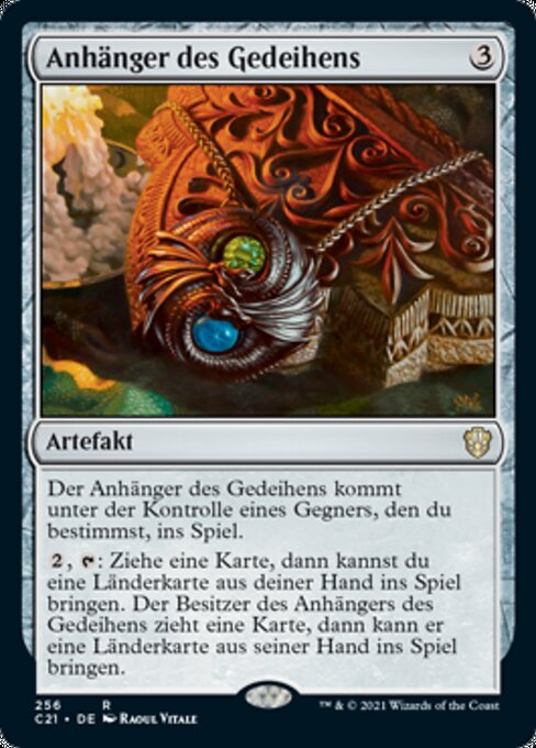 ![]() Variations— Parts— | Pingente da ProsperidadePingente da Prosperidade entra no campo de batalha sob o controle de um oponente à sua escolha.