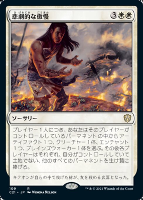 |  Variations— Parts— | 偏執致悲對每位玩家而言,你從由該玩家操控的永久物中選擇一個神器,一個生物,一個結界和一個鵬洛客。然後每位玩家各犧牲所有由他操控的其他非地永久物。