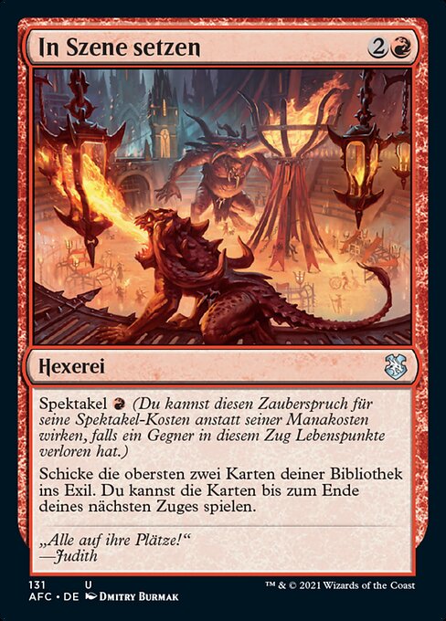 ![]() Variations— Parts— | In Szene setzenSpektakel Schicke die obersten zwei Karten deiner Bibliothek ins Exil. Du kannst die Karten bis zum Ende deines nächsten Zuges spielen.