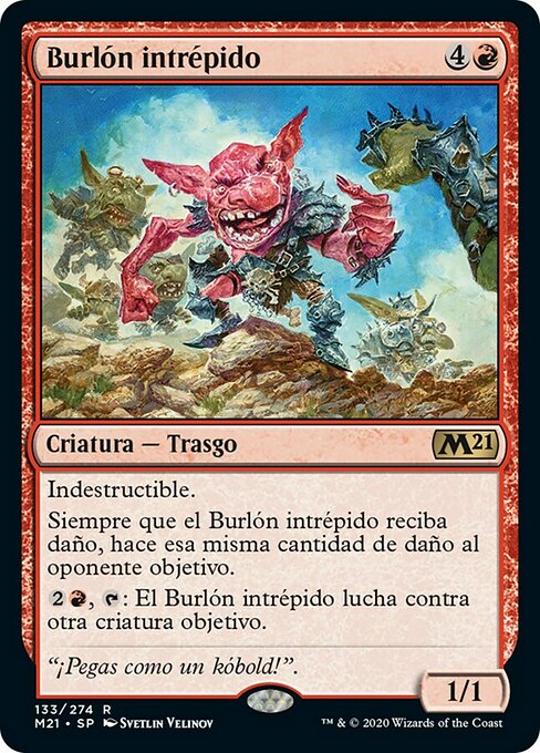 ![]() Variations— Parts— | Burlón intrépido1 / 1 Indestructible. Siempre que el Burlón intrépido reciba daño, hace esa misma cantidad de daño al oponente objetivo.