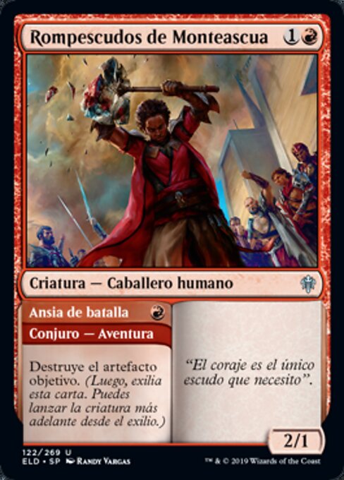 ![]() Variations— Parts— | Embereth Shieldbreaker2 / 1 Destruye el artefacto objetivo. (Luego, exilia esta carta. Puedes lanzar la criatura más adelante desde el exilio.)