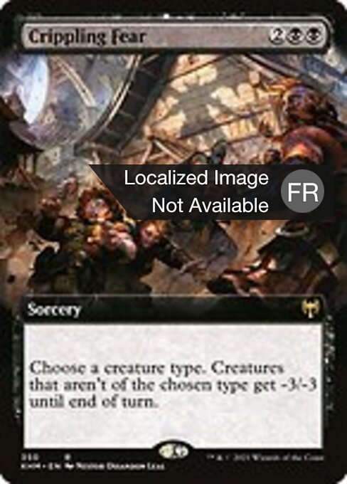 |  Variations— Parts— | Peur paralysanteChoisissez un type de créature. Les créatures qui ne sont pas du type choisi gagnent -3/-3 jusqu'à la fin du tour.