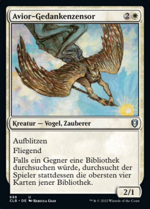 ![]() Variations— Parts— | エイヴンの思考検閲者2 / 1 瞬速 飛行 対戦相手がライブラリーからカードを探すなら、代わりにそのプレイヤーはそのライブラリーの一番上のカード4枚の中から探す。