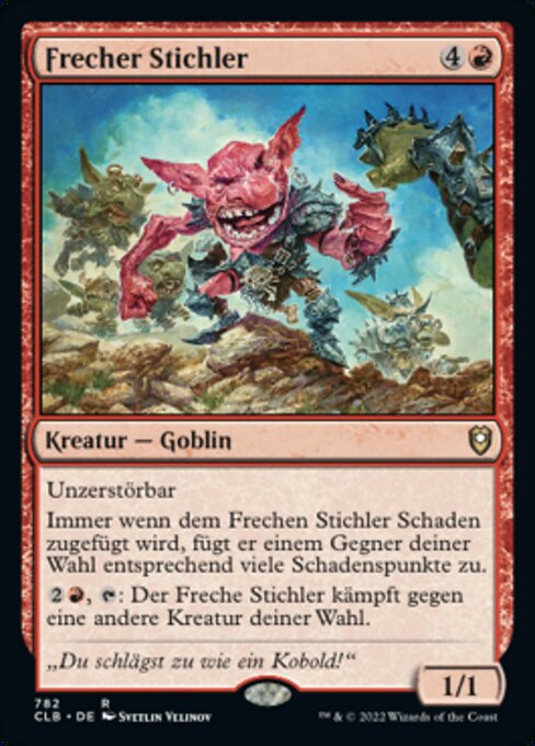 ![]() Variations— Parts— | Provocador Petulante1 / 1 Indestrutível Toda vez que Provocador Petulante sofre dano, ele causa a mesma quantidade de dano ao oponente alvo.