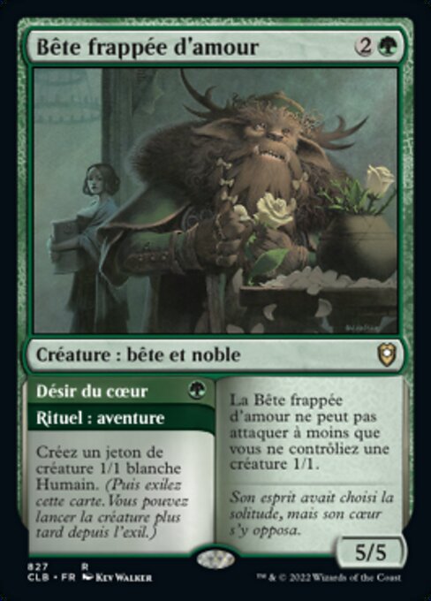 ![]() Variations— Parts— | Lovestruck Beast5 / 5 除非你操控1/1生物,否则热恋野兽不能攻击。