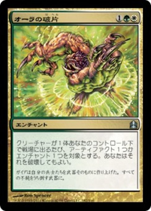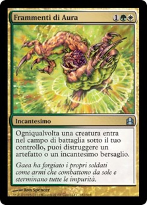 ![]() Variations— Parts— | Frammenti di AuraOgniqualvolta una creatura entra nel campo di battaglia sotto il tuo controllo, puoi distruggere un artefatto o un incantesimo bersaglio.