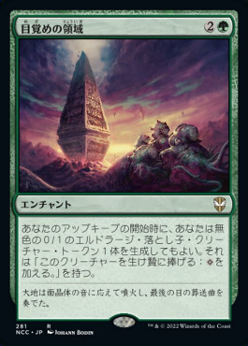 ![]() Variations— Parts— | 目覚めの領域あなたのアップキープの開始時に、あなたは無色の0/1のエルドラージ・落とし子・クリーチャー・トークンを1体戦場に出してもよい。 それは「このクリーチャーを生け贄に捧げる:あなたのマナ・プールに