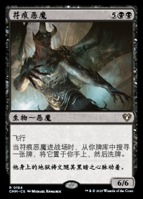 ![]() Variations : 1Parts— | Rune-Scarred Demon6 / 6 Flying When this creature enters, search your library for a card, put it into your hand, then shuffle.