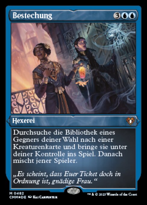 |  Variations : 1Parts— | BriberySearch target opponent's library for a creature card and put that card onto the battlefield under your control. Then that player shuffles.