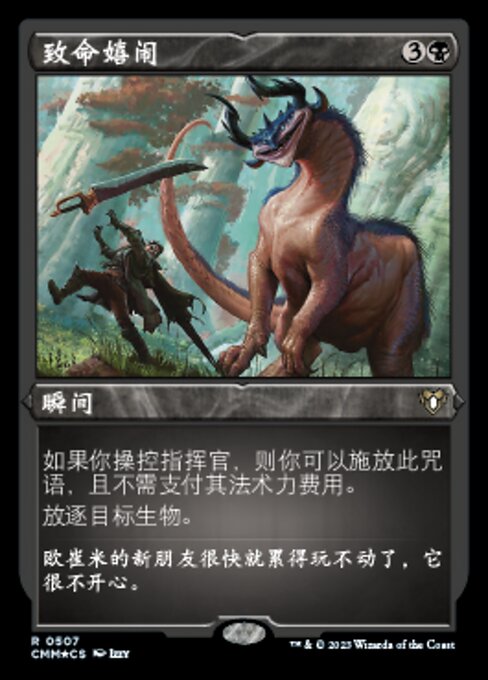 |  Variations : 2Parts— | Deadly RollickIf you control a commander, you may cast this spell without paying its mana cost. Exile target creature.