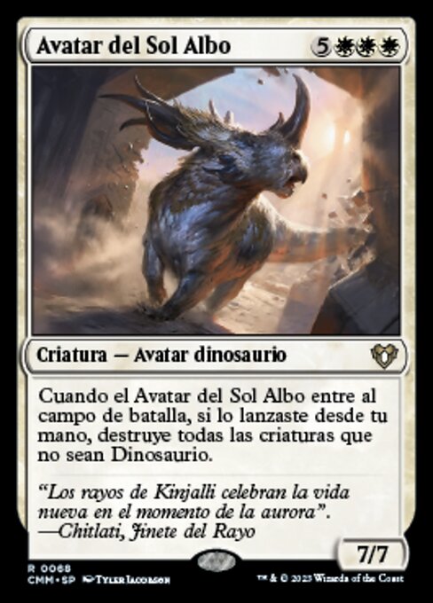 ![]() Variations : 1Parts— | Wakening Sun's Avatar7 / 7 When this creature enters, if you cast it from your hand, destroy all non-Dinosaur creatures.