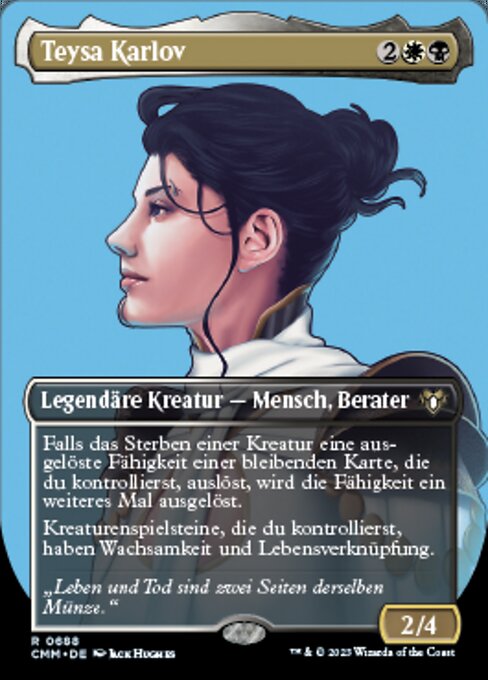 |  Variations : 2Parts— | Teysa Karlov2 / 4 If a creature dying causes a triggered ability of a permanent you control to trigger, that ability triggers an additional time. Creature tokens you control have vigilance and lifelink.