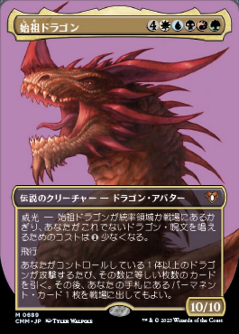 ![]() Variations : 3Parts— | The Ur-Dragon10 / 10 Eminence — As long as The Ur-Dragon is in the command zone or on the battlefield, other Dragon spells you cast cost Flying Whenever one or more Dragons you control attack, draw that many cards, then you may put a permanent card from your hand onto the battlefield.