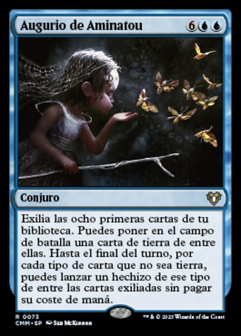|  Variations : 1Parts— | Aminatou's AuguryExile the top eight cards of your library. You may put a land card from among them onto the battlefield. Until end of turn, for each nonland card type, you may cast a spell of that type from among the exiled cards without paying its mana cost.