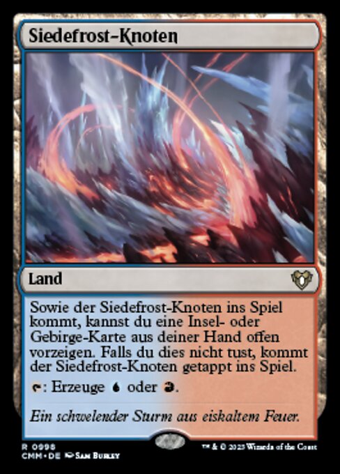 ![]() Variations— Parts— | Frostboil SnarlAs this land enters, you may reveal an Island or Mountain card from your hand. If you don't, this land enters tapped.
