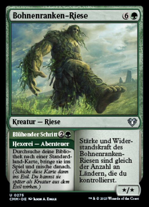 ![]() Variations— Parts— | Beanstalk Giant* / * Tanto la fuerza como la resistencia del Gigante tallo de habichuelas son iguales a la cantidad de tierras que controlas.
