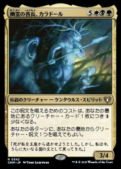 ![]() Variations— Parts— | Karador, Cacique Fantasma3 / 4 Te cuesta Una vez durante cada uno de tus turnos, puedes lanzar un hechizo de criatura desde tu cementerio.