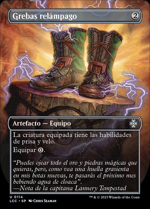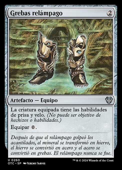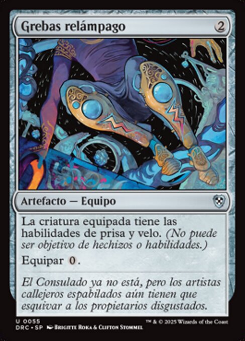 ![]() Variations— Parts— | Grebas relámpagoLa criatura equipada tiene las habilidades de prisa y velo. (No puede ser objetivo de hechizos o habilidades.) Equipar