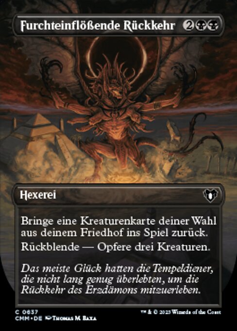 ![]() Variations : 1Parts— | Regreso pavorosoRegresa la carta de criatura objetivo de tu cementerio al campo de batalla. Retrospectiva—Sacrificar tres criaturas.